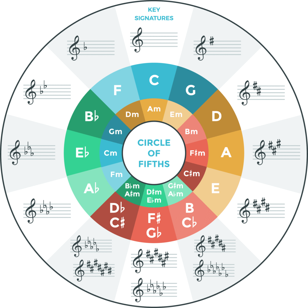 Key Signatures at a Glance – No more guesswork; the circle tells you instantly.